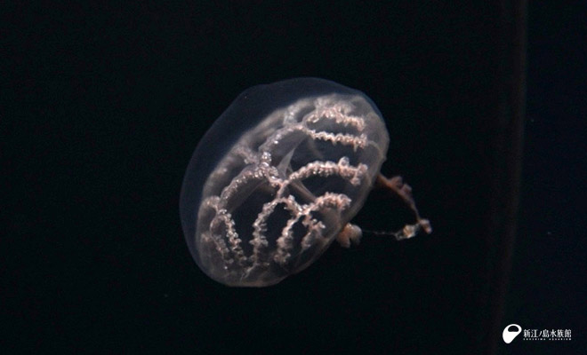 生まれたばかりのコトクラゲは、他のクシクラゲ類(カブトクラゲなど)と同様に櫛板を持ち、浮遊生活をおこないます。その後、成長に伴い櫛板はなくなり、着底、おとなの姿へと変化していきます。稚クラゲは、まだウサギ耳とはいかず、ハート型をしています。今しか見られない愛らしい姿と今後の大きな成長がとても楽しみです。