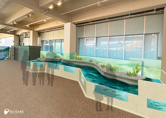本展示は現地をよく知るえのすいトリーターと設計者で視察をおこない、地元の川の身近な生き物とのふれあいを最大限に楽しめる展示を考案しました。