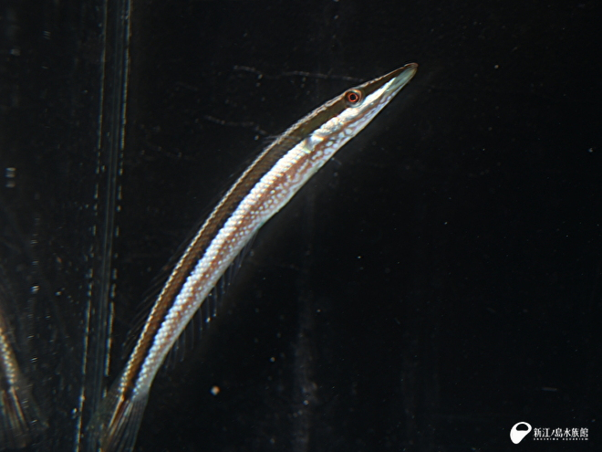 今回展示している個体は、横須賀市観音崎海岸のアマモ場でミルに隠れていたところを手網で採集しました。比較的南方に生息する種であるため、相模湾ではあまり見ることができません。今は 10cmほどの小さな個体ですが、成長による体色変化が楽しみです。