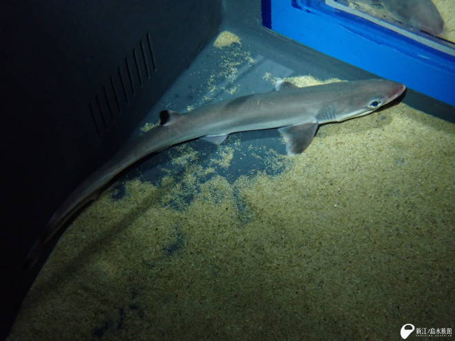 エドアブラザメはラブカやカグラザメと同じ、カグラザメ目に分類される原始的なサメで、生きたまま採集されることは稀です。 多くのサメのえら穴は 5対ですが、エドアブラザメは 7対あります。 ラブカやカグラザメも 6対と、原始的な種の特徴としてえら穴の数が多いことが挙げられます。 最大で 1.5mほどになりますが、今回の個体は 60cmほどと、やや小型です。 生きた姿をぜひ見に来てください。 ※生物の状態によって、短期間の展示となる可能性があります。