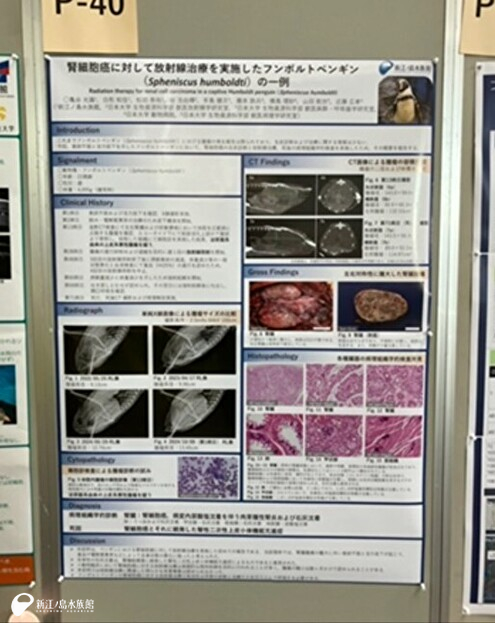 私は、昨年度に残念ながら亡くなったフンボルトペンギンの「グー」の治療経過とその病態についてポスター発表をおこないました。