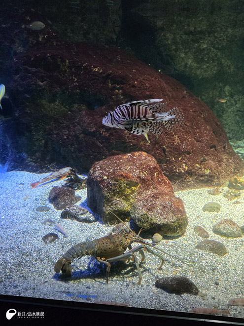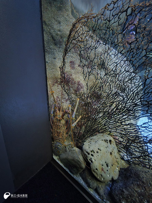 相模湾大水槽の潮だまり(タイドプール)で、イセエビが大胆に歩いていました。