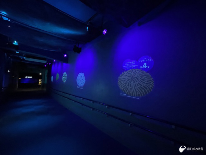 サンゴはなんで光るの? 光る理由は? 壁の解説を見ながら進んでみてくださいね。
