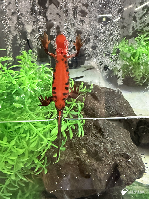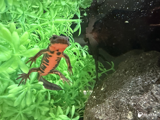 先日、相模湾ゾーンの川魚のジャンプ水槽横の小水槽を、ヒガシシマドジョウからアカハライモリへ展示変更しました。 小さな水槽ですが、のぞきこんで見てくださるお客さまも多く、出だしは上々です。