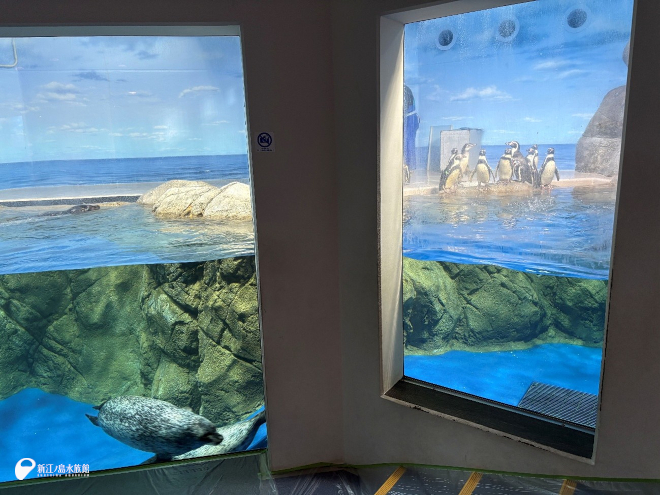 この時ペンギンたちは、隣のアザラシプールとバックヤードへお引越しです。いつもと違う環境に若干そわそわしていたようですがしっかりご飯は食べていたようです。