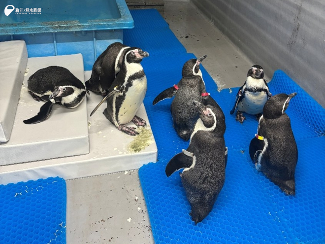 (今回足の不自由な「チッチ」と「サニー」のみ、ペンギンプールの安全な場所に残ってもらったのでここには載っていません。他のペンギンたちが居ない静かになった部屋で、すやすや寝ている姿が印象的でした。)