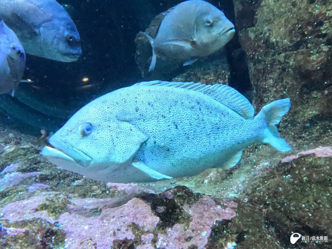 「ゴマシオ」:実はツチホゼリはもう少し青みがかった個体が多いそうなのですが、相模湾大水槽のツチホゼリは白黒で、まさに「ごま塩」模様!