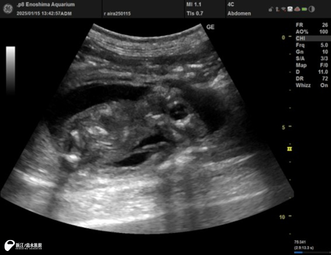 2025年 1月ミナミアメリカオットセイ「ライラ」の胎子エコー。「ライム」が母「ライラ」のお腹の中にいた時の超音波画像です。胎子の成長を、超音波を使用し定期的にモニタリングしていきます。