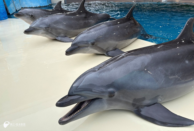 今日の一枚!ステージの上に上がるバンドウイルカたち