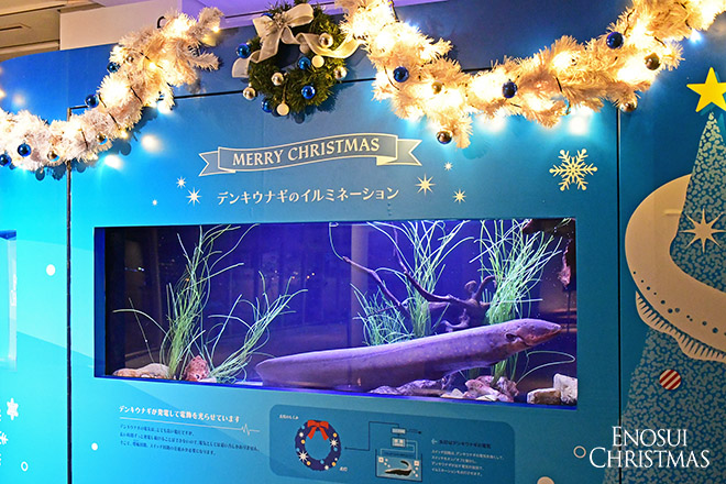 デンキウナギは捕食や身を守るために電気を出すほか、弱い電気を使って電場をつくり周囲を探ります。このデンキウナギが発電するエネルギーを活用し、イルミネーションを点灯。デンキウナギの生態を分かりやすくご紹介します。