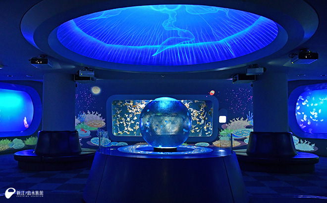 満月の時期、夜の海で一斉に産卵するサンゴ。神秘の世界をクラゲファンタジーホールの海月(クラゲ)とともにお届けします。季節ごとの演出にも注目です。