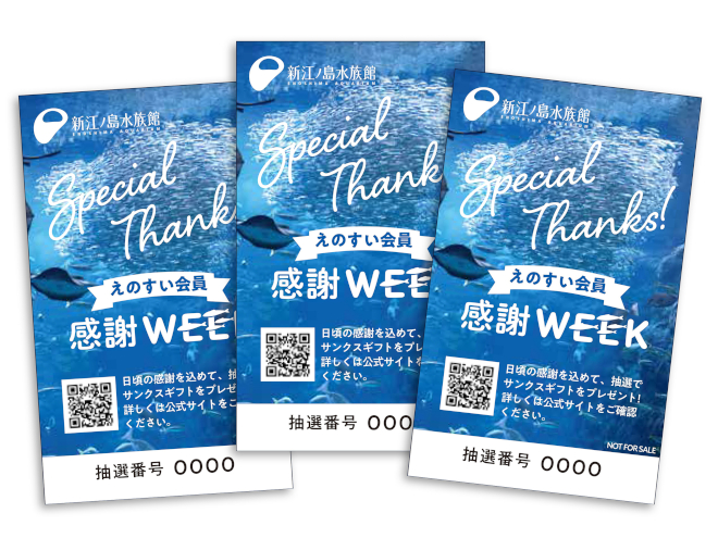 えのすい会員限定 感謝祭 」でも会員さまに“サンクスカード”をプレゼントいたします。ご参加の方は、イベント当日にお受け取りください。