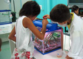 子供ボランティアが開催する生き物研究室。身近な生き物の生態を子供ならではの視点で実験解説します。 水槽づくりから解説まで全て子供達が準備しました。