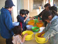 春がやって来ました!! 生き物も冬眠から覚め、植物も芽を出し、花を咲かせ、日本中春色模様。春って何色?どんな模様? オリジナルの春色模様でハンカチを染めちゃおう!! 染物ってむずかしい?・・・ 大丈夫!みんな、上手にできちゃうよ〜♪