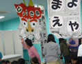 鬼は~そと!福は~うち!悪い鬼を追い払おう。 「今年一年みんなが健康でありますように・・・」 みんなの健康を願って体験館スタッフが福を配ります。 みんな袋を持って体験館に集れ!