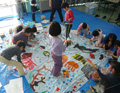 みんなが見て感じた生き物たちの色を、大きな海色のキャンバスに描いてみよう。