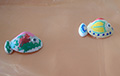 “えのすい”の目の前の砂浜に打ちあがるものといえば、石や流木に、貝がらもあるね。 大きさの違う2つの貝を上手に組み合わせるとおさかなの形になるよね。 これに粘土をつめて、マグネットにしてみよう。 ペンでいろいろな模様をつけて、ぼくだけ、わたしだけ、のおさかなマグネットのできあがり。 冷蔵庫にペタン、机にペタン。あちこちを水族館に変身させよう!