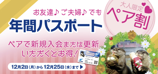 お友だち♪ ご夫婦♪ で! 今だけ 大人2名分がお得に!「年間パスポート ペア割」 (12月2日~12月25日)