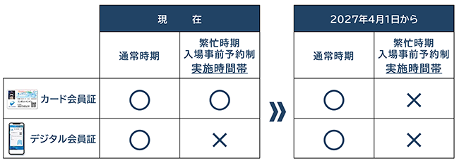 現在のカード会員証でご入場いただき、年間パスポート発行カウンターで更新手続きをいたします。