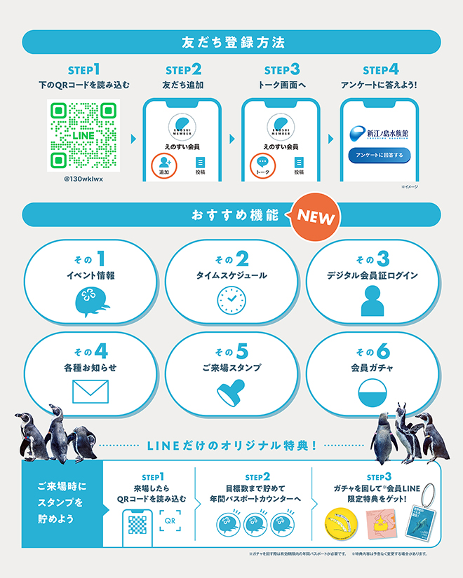 2026年4月16日(木)より、年間パスポート会員のみなさまにもっと身近に “えのすい” を感じていただけるよう「えのすい会員LINE」 を開設しました。