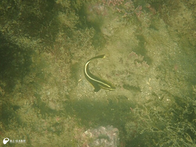 正解は・・・コロダイです! 成魚とは似ても似つかない姿ですよね。私も初めて見たときは何の魚だろうと思いました。稚魚のときは、写真のように黄色と黒の縦縞模様の体で、泳ぎ方もくねくねとしていて特徴的ですが、成長すると銀色の体に小さな黄色の斑点模様の姿になります。成魚の姿が気になる方は、ぜひ相模湾大水槽で探してみてください。